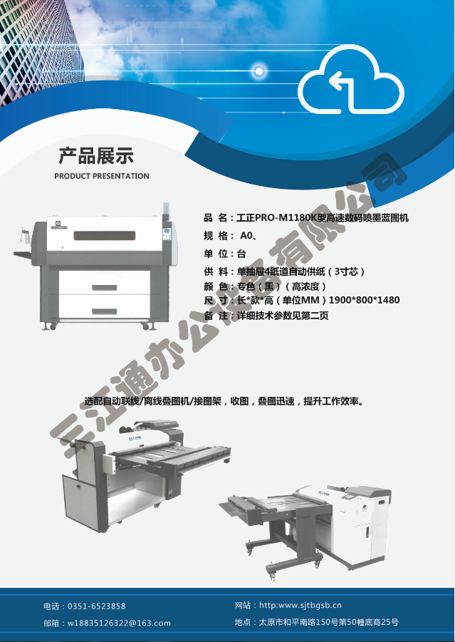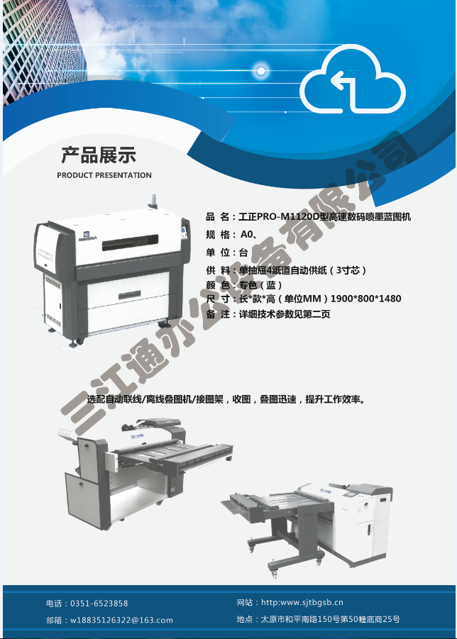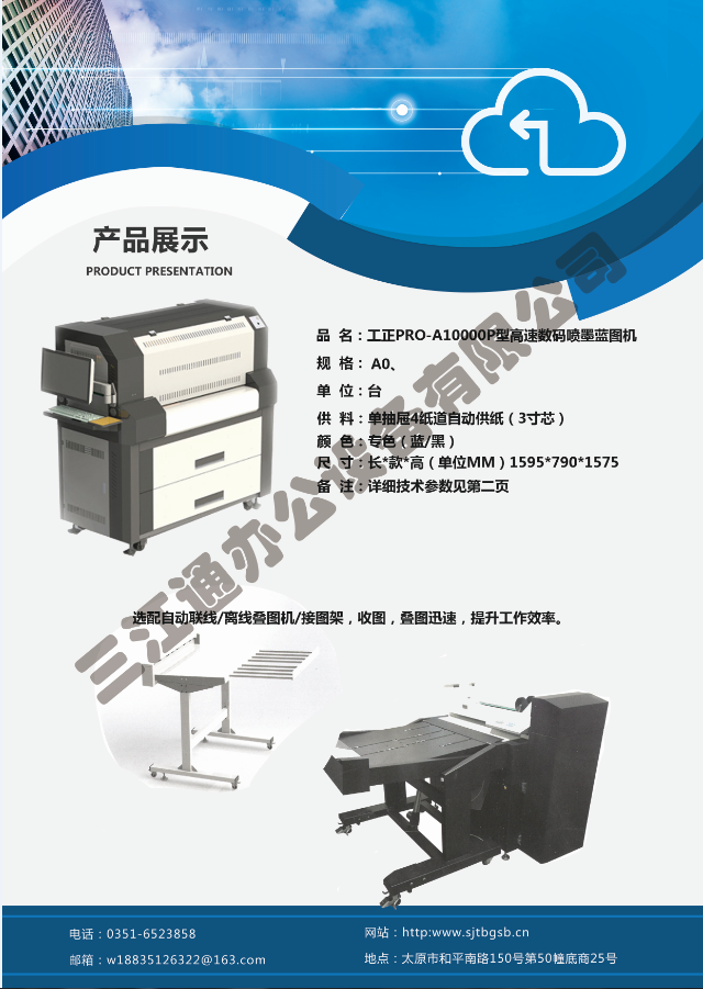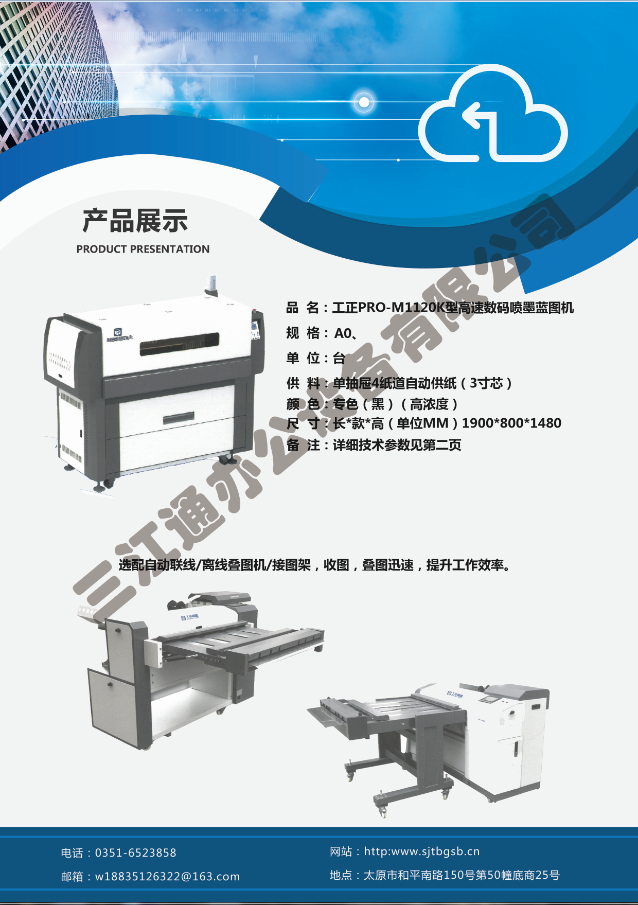 太原市三江通辦公設(shè)備有限公司是一家專業(yè)從事曬圖機(jī)、數(shù)碼復(fù)印機(jī)、多功能打印、復(fù)印、掃描、縮放一體機(jī)、模擬工程復(fù)印機(jī)、繪圖儀、大型掃描儀、電子歸檔設(shè)備、手動(dòng)、自動(dòng)成形圖紙檔案密集柜、圖前圖后設(shè)備以及所有制圖設(shè)備耗材供應(yīng)、維修一條龍的實(shí)體企業(yè)。多年來(lái),已與日本、北京、天津、上海、杭州等諸多家廠方多方合作,成為山西>>更多